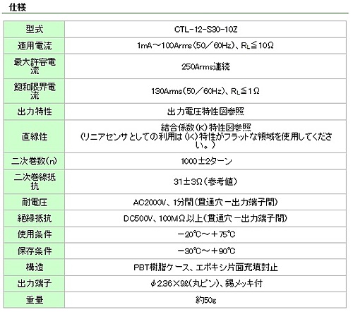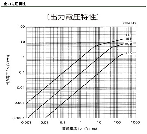 ・1000:1の高変流比で、二次電流が小さく直接電子回路へのインターフェースが可能。