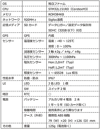 GPS, および加速度, 温湿度, 気圧, 磁気, 照度センサーを搭載しています。