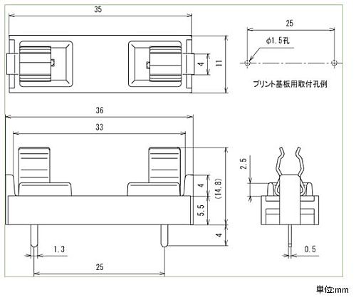 適合ヒューズ管:φ6.35×30mm、φ6.35×31.8mm(サトーパーツ製品はありません)