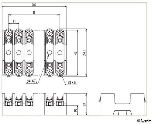 ■定格:250V-10A ■絶縁抵抗:DC500V、100MΩ以上 ■耐電圧:AC1500V(1分間) ■極数(P):1 ■主絶縁材:フェノール(UL94V-0) ■端子ネジ:M3×5(バインドネジ):締付トルク0.5N・m以下 ■端子金具:ネジ締付端子(M3) ■取付ネジ締付トルク:1.2N・m以下:M4ネジ ■本体色:B(黒) ※写真はイメージです。 ※在庫切れの場合は別途御相談させて頂きます。