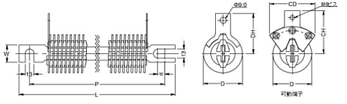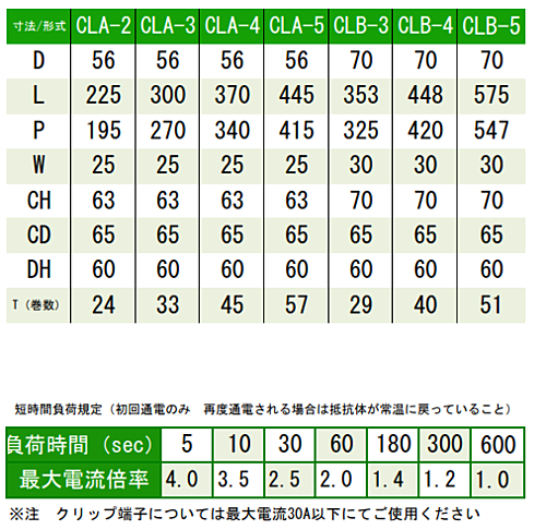 大電流用抵抗器(CL型) ■特 長 ・大電流抵抗値(WMR型より抵抗値の低い場合及び電流値の多い場合)に最適です。 ・抵抗線、支持碍子等、発火する材料を用いておりませんので安心してご使用頂けます。 ・抵抗線の使用量(重量)が多いので短時間定格及び断続使用に適しています。 ・熱効率がよいので十分な風冷を行うことにより過負荷対応が可能です。 ■シリーズ共通仕様 1. 抵抗値範囲 0.033Ω~1.6Ω(呼称電力による) 2. 抵抗値許容差 K級±10% 3. 抵抗温度特性 +200?400ppm/℃ max 4. 絶縁耐力(1分間) AC2000V 5. 絶縁抵抗 50MΩ以上 (DC1000V メガー) 6. 推奨使用温度 250℃ max ※仕様にない製品でもカスタマイズ対応のご相談を受け付けています。 お気軽にお問合せください。 (ログイン後、お問合せフォームよりお問合せください)