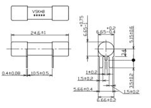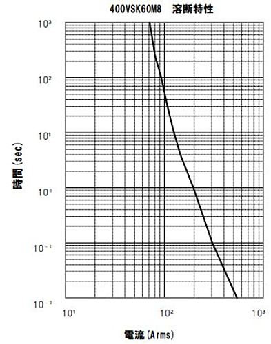 ●定格電圧・遮断容量:AC400V-10kA / DC400V-10kA (L/R=1ms) ●最小遮断電流:DC300V:360A(定格 6 倍),L/R=1ms DC400V:1kA(定格 16 倍以上),L/R=1ms ●定格電流(A):60A ●溶断 I2T(A2S):1800 ●全遮断 I2T(A2S)at DC400-10KA:3300 ●温度上昇(⊿t)※:⊿T54.7℃(30A 通電時) ●電力損失(定格電流比 50%負荷時):1.9w(30A) ●質量(g) :2.8 ※実効電流値は定格電流の50%以下での使用を検討ください。使用時のヒューズ温度は 120℃以下となるようにしてください、高温になると半田による食われ現象により端子が溶解する場合があります。 サーボドライバ、DCDCコンバータに最適なVSKシリーズに高容量60A仕様を追加いたしました。 小型形状ながら、定格60Aを実現。 実装面積の小型化、製品のダウンサイジングに有効です。