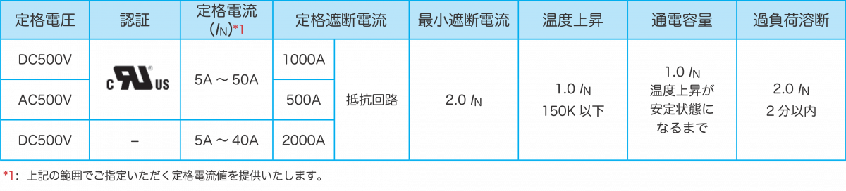【特性】●定格電圧:DC500V、AC500V●定格電流:5A〜50A●定格遮断電流:DC500V 5〜50A(UL248-1、UL248-14 C-UL US Recognized対応) 1,000A AC500V 5〜50A(UL248-1、UL248-14 C-UL US Recognized対応) 500A DC500V 5A〜40A 2,000A●温度上昇:1.0 IN 150K以下●通電容量:1.0 IN 温度上昇が平衡状態になるまで●過負荷溶断:2.0 IN 2分以内●代表抵抗値:10A=22mΩ 15A=14mΩ 20A=8mΩ 25A=4.8mΩ 30A=4mΩ 35A=3.3mΩ 40A=2.8mΩ 50A=1.8mΩ【認証】●5A-50A UL248-1、UL248-14 C-UL US Recognized【特徴】●高耐熱性、高強度のセラミック容器による高遮断性能●基板に直接実装可能な端子の採用●スパイラルエレメントによる優れたON-OFF耐久性と高信頼性●エレメントと端子の溶接により基板実装時の熱的影響を抑制●AEC-Q200(Rev.E)適合●RoHS2対応・鉛フリー●半田レス【その他】●標準納期は数量、時期によって変動することがございます。●受注単位数のご要望がある場合、別途ご相談ください。【アプリケーション】●EV、PHEV、HEV●DC/DCコンバータ●サーボモーターアンプ●車載用充電器●FCV●エアコン●車載用DC/DCコンバータ●車載用補器【製品情報ページ】https://www.socfuse.com/ja/products/detail/500vbi1030ボルト締めタイプはこちら↓https://www.socfuse.com/ja/products/detail/500vbl1030a【用途例】●自動車補機用●産業非接触給電