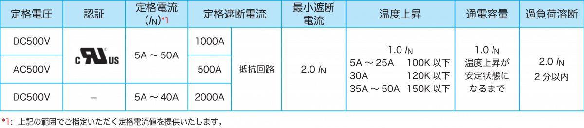 【特性】●定格電圧:DC500V、AC500V●定格電流:5A〜50A●定格遮断電流:DC500V 5〜50A(UL248-1、UL248-14 C-UL US Recognized対応) 1,000A AC500V 5〜50A(UL248-1、UL248-14 C-UL US Recognized対応) 500A DC500V 5A〜40A 2,000A●温度上昇:1.0 IN 150K以下●通電容量:1.0 IN 温度上昇が平衡状態になるまで●過負荷溶断:2.0 IN 2分以内●代表抵抗値:10A=22mΩ 15A=14mΩ 20A=8mΩ 25A=4.8mΩ 30A=4mΩ 35A=3.3mΩ 40A=2.8mΩ 50A=1.8mΩ【認証】●5A-50A UL248-1、UL248-14 C-UL US Recognized【特徴】●高耐熱性、高強度のセラミック容器による高遮断性能●基板に直接実装可能な端子の採用●スパイラルエレメントによる優れたON-OFF耐久性と高信頼性●エレメントと端子の溶接により基板実装時の熱的影響を抑制●AEC-Q200(Rev.E)適合●RoHS2対応・鉛フリー●半田レス【その他】●標準納期は数量、時期によって変動することがございます。●受注単位数のご要望がある場合、別途ご相談ください。【アプリケーション】●EV、PHEV、HEV●DC/DCコンバータ●サーボモーターアンプ●車載用充電器●FCV●エアコン●車載用DC/DCコンバータ●車載用補器【製品情報ページ】https://www.socfuse.com/ja/products/detail/500vbi1030ボルト締めタイプはこちら↓https://www.socfuse.com/ja/products/detail/500vbl1030a【用途例】●自動車補機用●産業非接触給電
