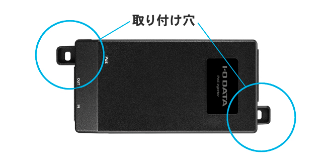 IEEE802.3atに準拠した最大30W給電可能既存のネットワーク環境に追加するだけでPoE給電を可能にするPoEインジェクターPoE給電が開始されると点灯するLEDランプを搭載固定用の取り付け穴がついているので、壁などに固定することが可能